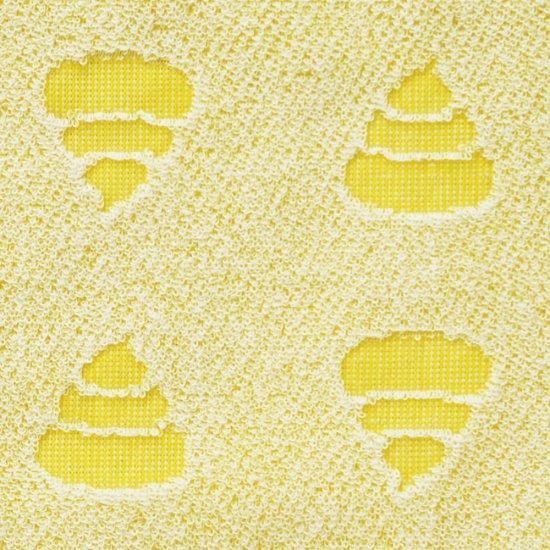横糸にカラー糸を使用し、白糸のパイル部分の凸凹で、 うんこデザインを表現